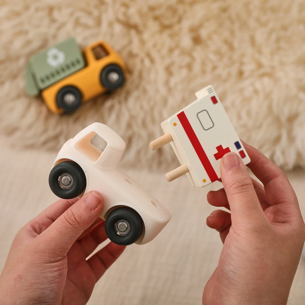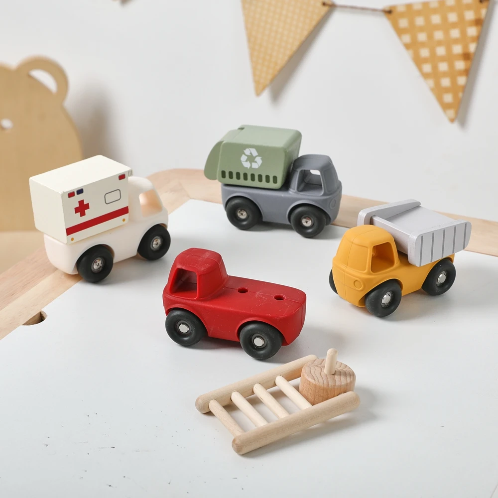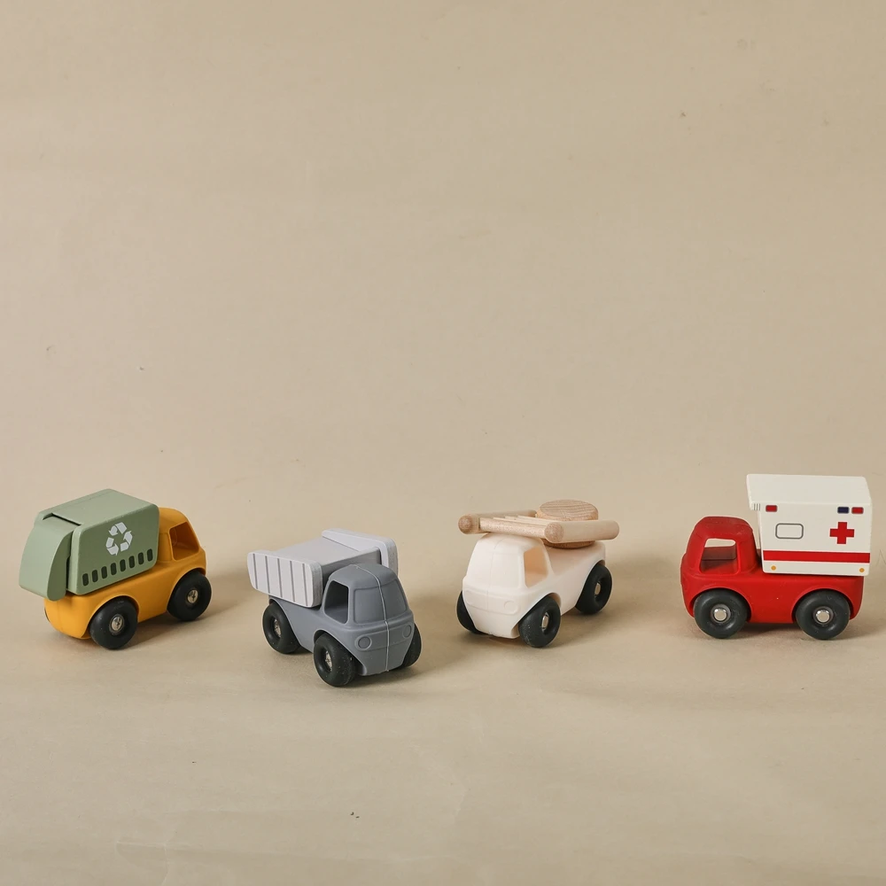 Baby BPA Free Silicone Montessori Toys Food Grade Cartoon Engineering Car Soothing Teether Toys For Newborn Teething Nursing Toy