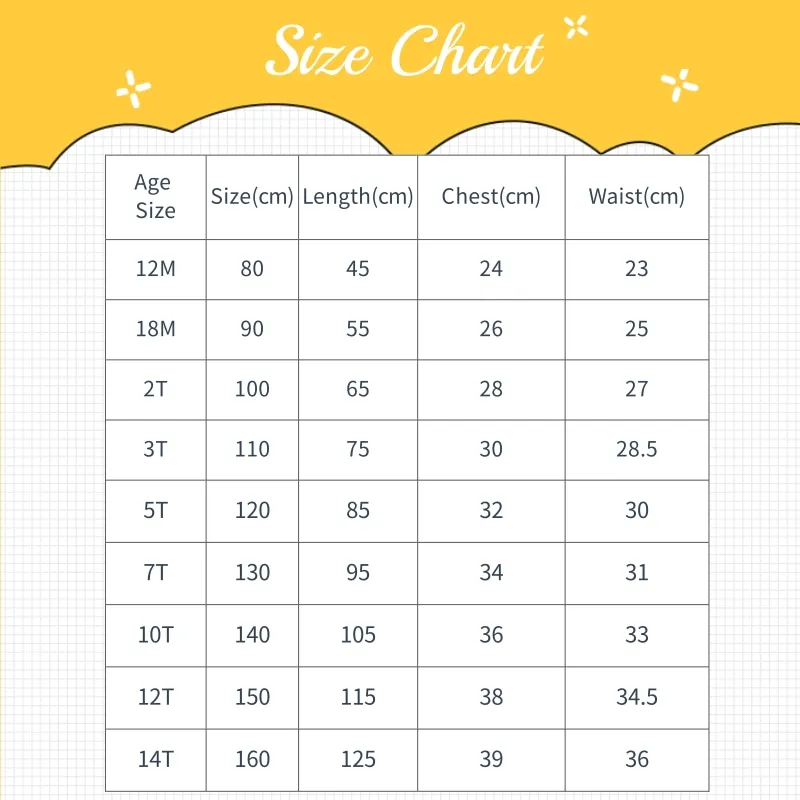 Age Size: 12M, 18M, 2T, 3T, 5T, 7T, 10T, 12T, 14T;