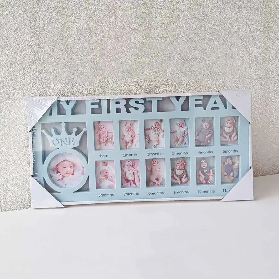 1.This is a DIY photo frame used to display 13 photos of newborns in their first year of life.